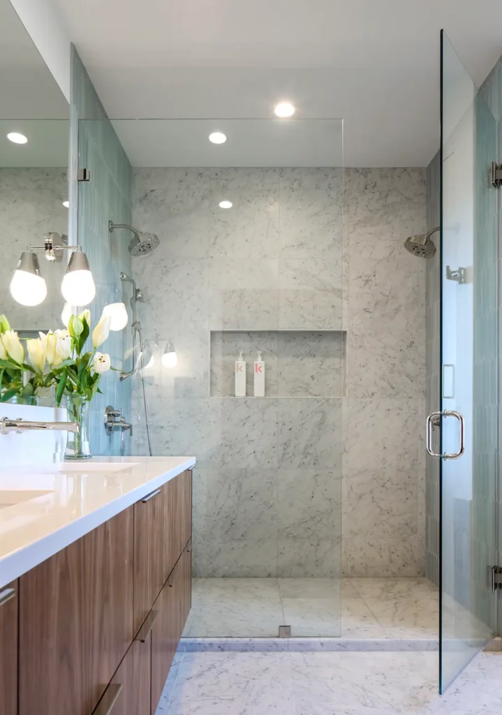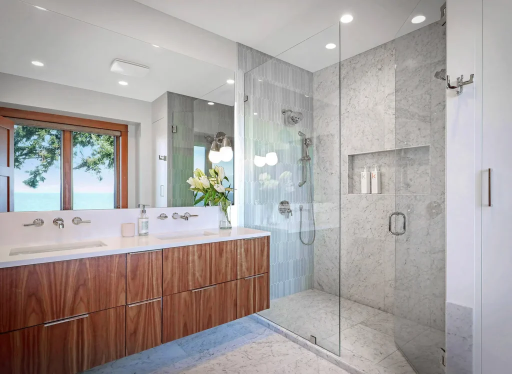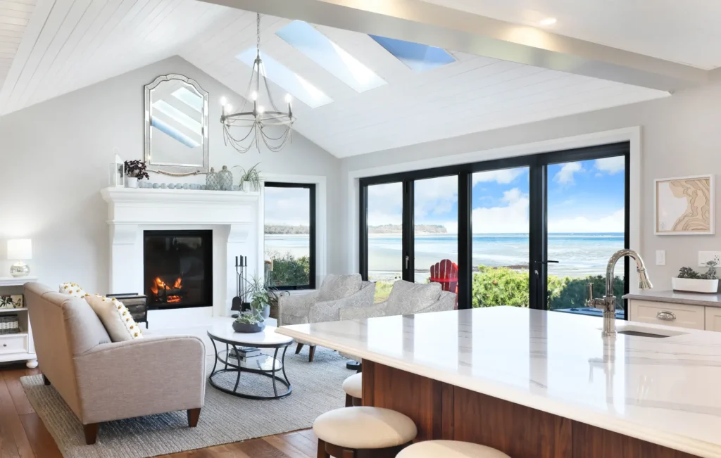 Set on a dreamy stretch of waterfront, this home was lovingly updated for clients starting their next chapter in retirement. The goal was to create a warm, welcoming space for both everyday living and extended family visits. A blend of traditional details and modern updates brings charm and comfort throughout, with the showstopper being a luxurious marble shower—topped with a skylight that fills the space with natural light.