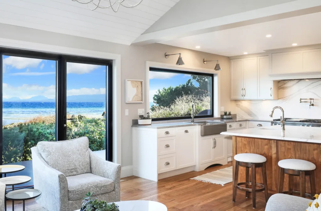 This 1960s home underwent a full transformation, with all-new materials and finishes throughout. Working closely with the homeowners and Facet Construction, we updated the space while staying true to the home’s original mid-century architecture. Perched on a cliff overlooking Seal Bay, the result is a stunning, modernized retreat that blends timeless design with breathtaking views.