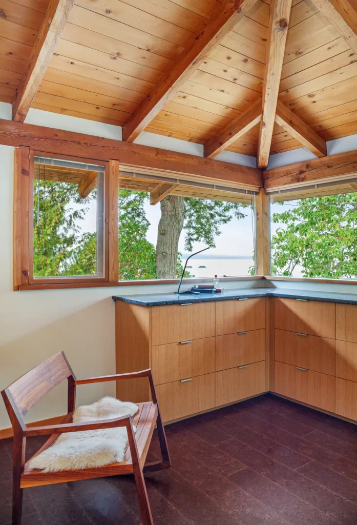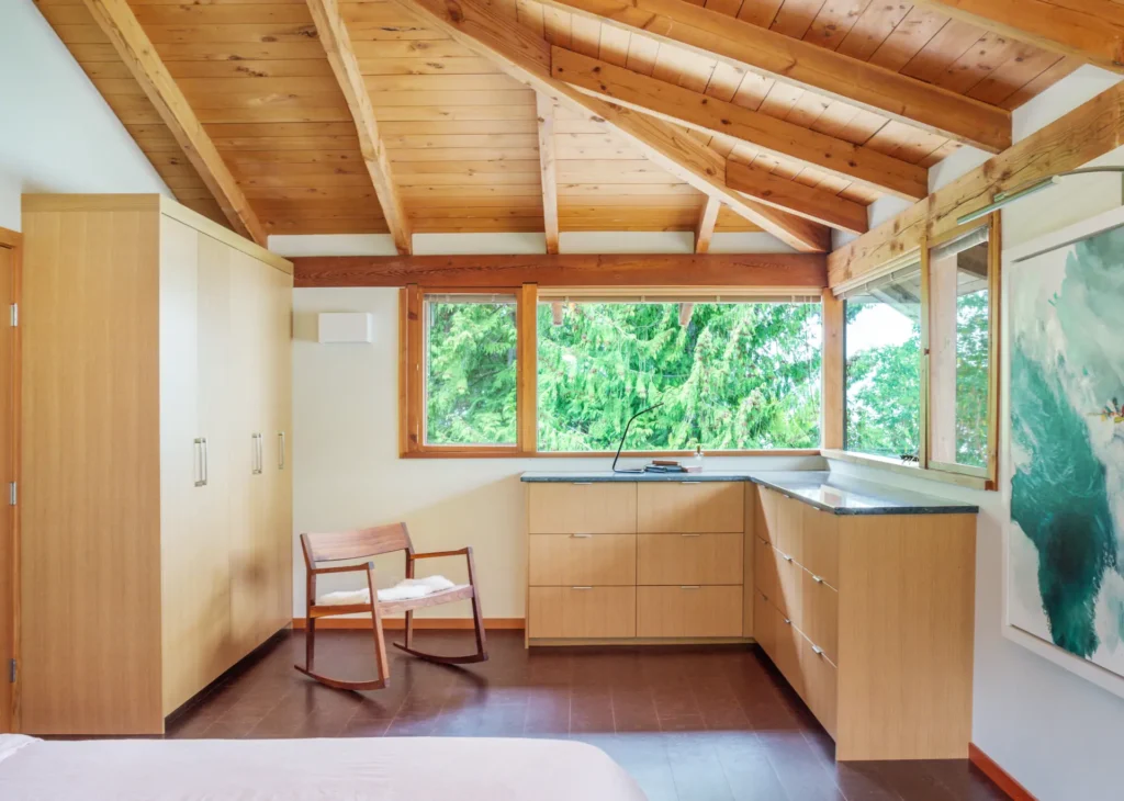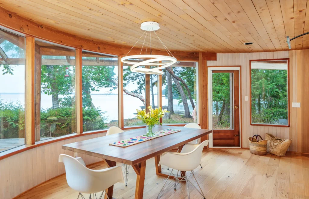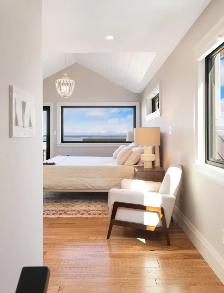 Just a short ferry ride from town, this secluded 1960s bungalow offered the perfect canvas for a serene getaway. Nestled on a private beachfront with sweeping views of the Beaufort mountain range and Tree Island, the home was thoughtfully renovated to reflect the peaceful, grounding nature of its surroundings. Designed as a restful escape between the homeowner’s work travels, we let natural materials and the stunning landscape guide every design choice. The result is a one-of-a-kind retreat that’s as calming as it is captivating.